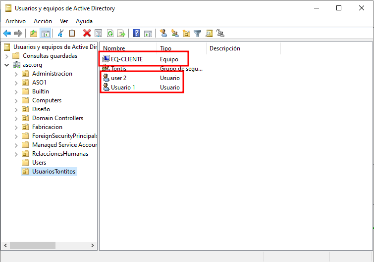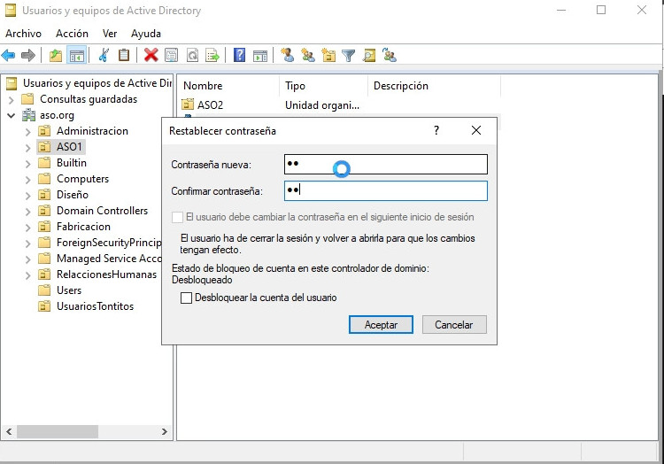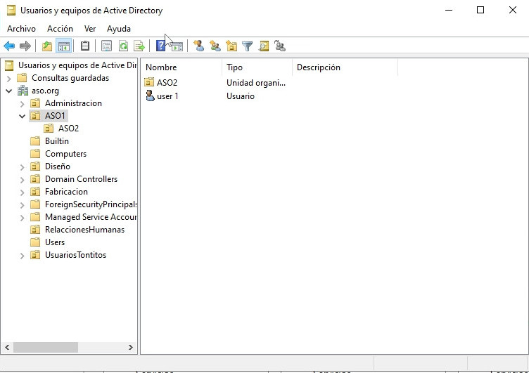 Unidad Organizativa ASO1Unidad Organizativa ASO2 dentro de ASO1