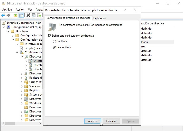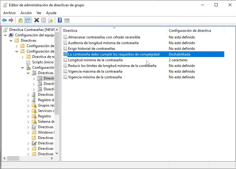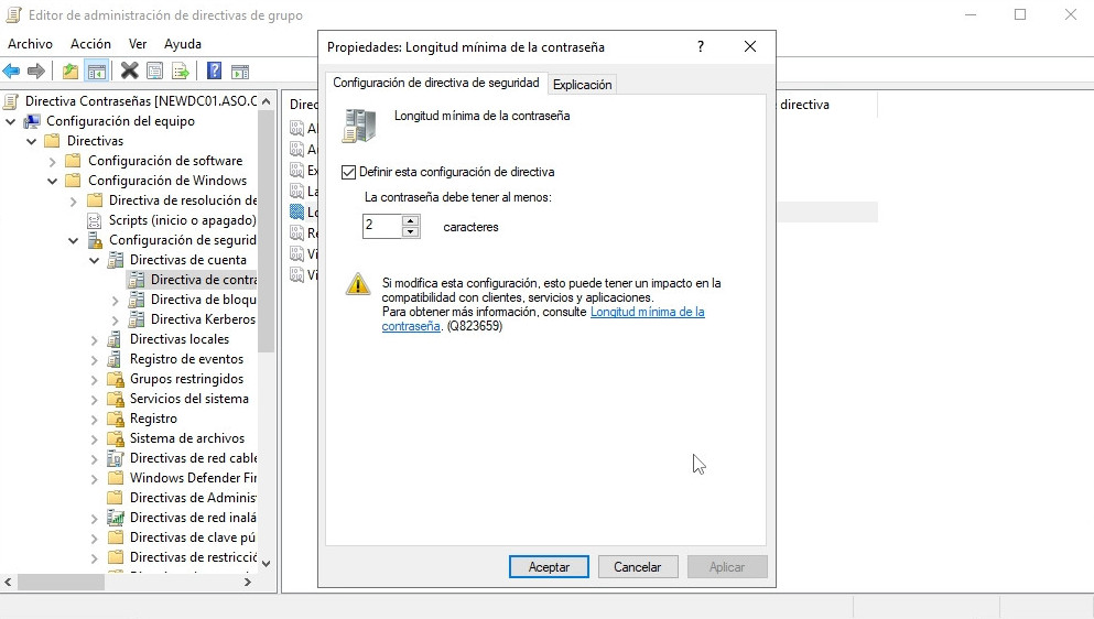 Gracias a la GPO llamada «Longitud minima de contraseña» podemos cambiar la cantidad minima de caracteres de una contraseña.