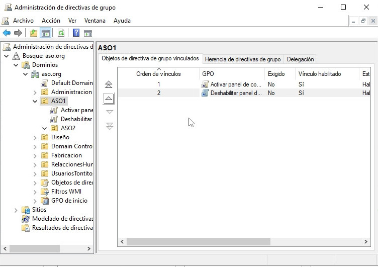 Si tenemos dos GPO que se contradicen tenemos que modificar la prioridad para indicar cual es la que queremos que se esté aplicando en el momento.