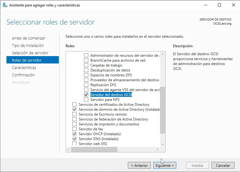 Si usamos Windows Server podemos usar el equipo como servidor iSCSI si lo necesitamos para ello tenemos que instalar el rol que esta dentro de «Servicios de archivos y almacenamiento».
