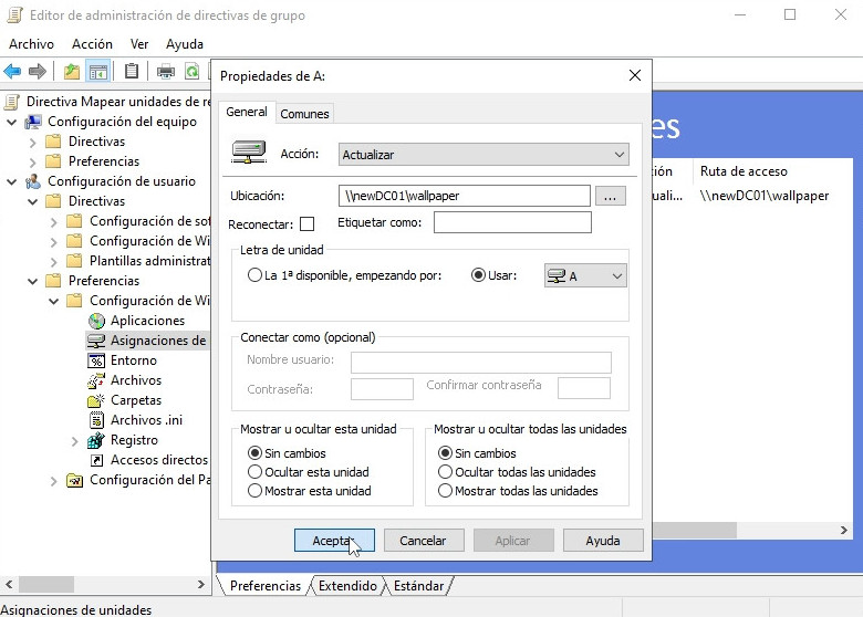 Podemos hacer que todos los equipos de una unidad organizativas tengan montado automáticamente una unidad de red.