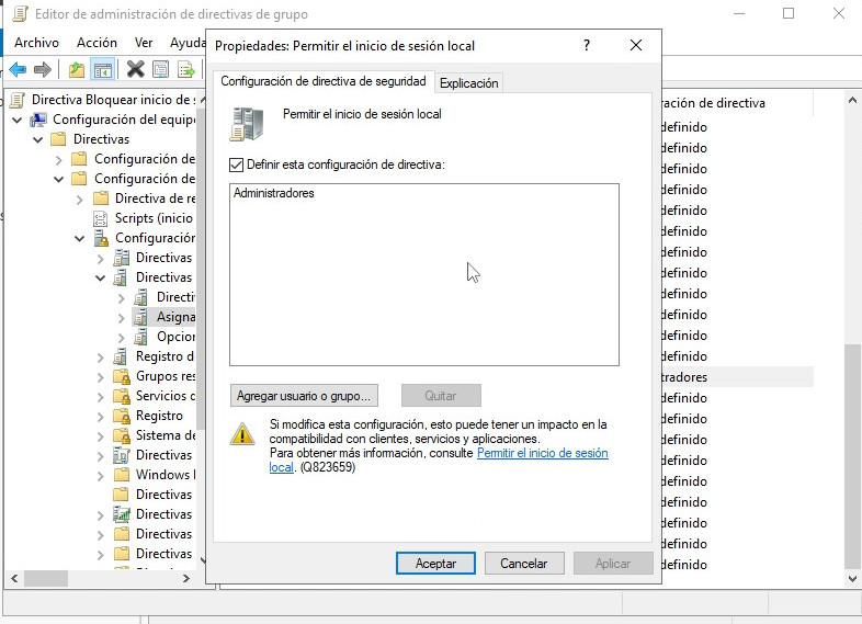 Podemos hacer una «lista blanca» de usuarios usando las GPO. Se llama «Permitir el inicio de sesión local»