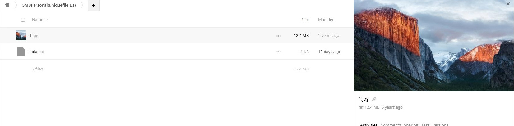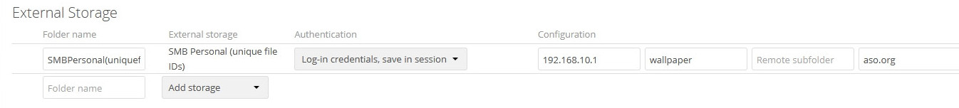 Otra cosa que permite esta instancia de ownCloud es añadir una carpeta compartida por SMB e iniciar sesión con el usuario en el que estamos, pero primero tenemos que activar el almacenamiento externo.