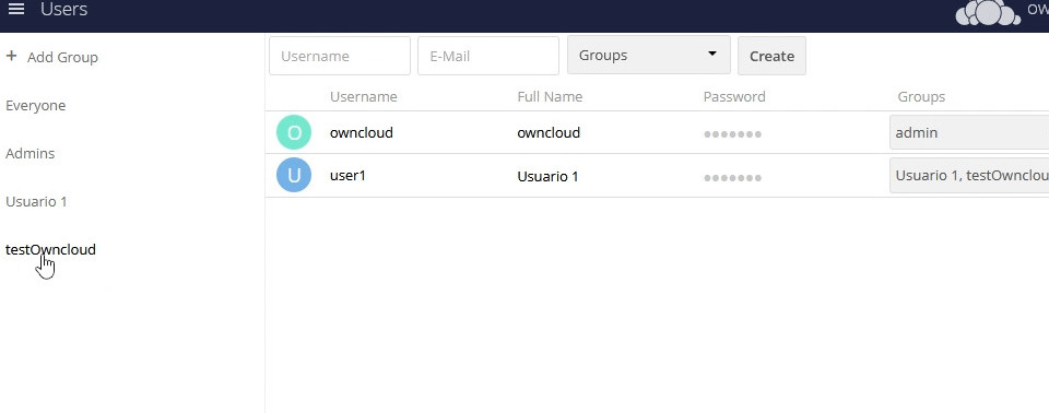 Una vez hemos visto que los grupos se han creado correctamente podemos iniciar sesion con un usuario y compartir un fichero o una carpeta en ese grupo.
